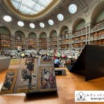 从老佛爷百货出来,我们先特意跑回旅馆,将巧克力和其他战利品妥帖安放,才轻装上路,迎向下一个目的地——法国国家图书馆。巴黎的图书馆何其多,但法国国家图书馆却是其中最具分量的一座。它不仅是一座书籍的殿堂,更是一部浓缩的法国文明史。前一天在社交媒体上无意间看到介绍,说这里免费开放,却是“最值得造访的巴黎之地”。这种评价让我心生好奇,于是我们特意将其纳入行程。 值得说明的是,我们选择的并不是后期建成的新馆…
