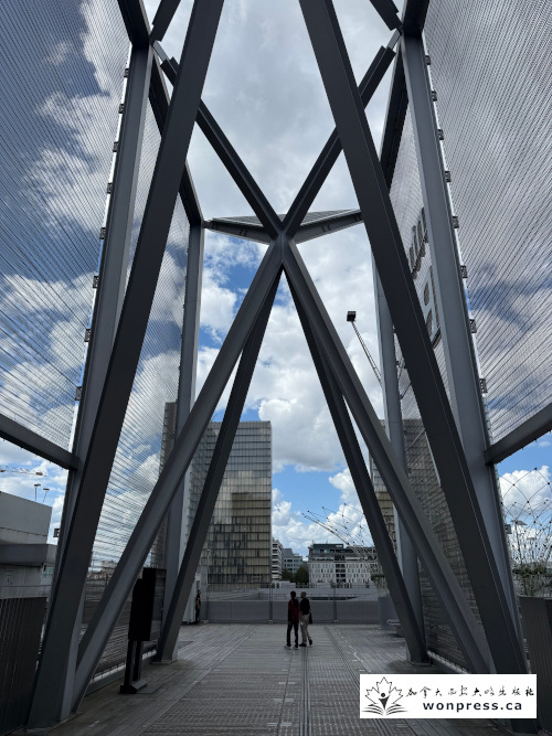 我们步行跨过那座特制的人行桥,横跨塞纳河的体验本就独具一格。桥身设计简洁而现代,脚下的木质踏板在阳光下泛着温润的光泽。风自河面吹来,带着凉意,也夹杂着水波的清新气息。站在桥中央回望,河水缓缓流淌,身后是古典的巴黎天际线,而前方却是前卫的玻璃与钢铁——仿佛一步之间,跨越了时空,从19世纪的浪漫跃入21世纪的理性。