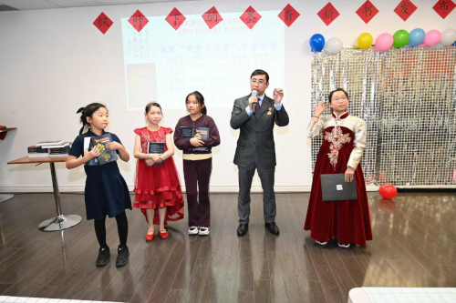 文化的传承需要接力,文学的写作同样需要传递。看到这么多年轻的面孔、这么多热爱文字的小朋友,他们正在成长为优秀的写作者,这让大家倍感欣慰,也让在座者对海外中文文学的未来充满信心。列治文山华裔市议员崔冰辉先生从汉字本身的魅力出发,对“子”字进行了精妙的拆解与介绍,其独到的见解赢得了现场的阵阵掌声。之后,崔议员还与加拿大小象传媒创办人玛莎兴致勃勃地即兴朗诵了学生的作品,赢得了观众的热烈掌声。