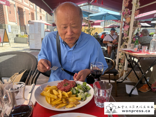 抵达枫丹白露,丛医生熟练地找到了他惯常的停车位,随后我们在离入口不远的露天餐厅落座。那是一段极具法式情调的午餐:阳光、露台、以及一瓶红酒——在当地人看来,餐中饮少量红酒几乎是再自然不过的事;这与我在瑞士博士后时期下田劳作时,午餐配上一杯红酒的回忆不谋而合。丛医生点了法国人的最爱–鲜牛肉饼(牛肉塔塔或类似冷肉做法),口味对我而言还带有初次试吃的意外感(与我第一次在外尝三文鱼片带来的震动类似),只是我的胃似乎并未完全适应,后续略感不适,只能用后来的散步与清新的空气慢慢调节。