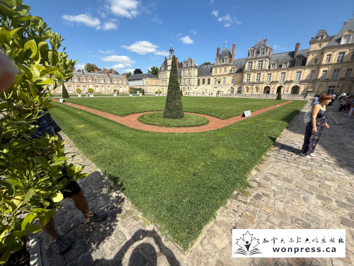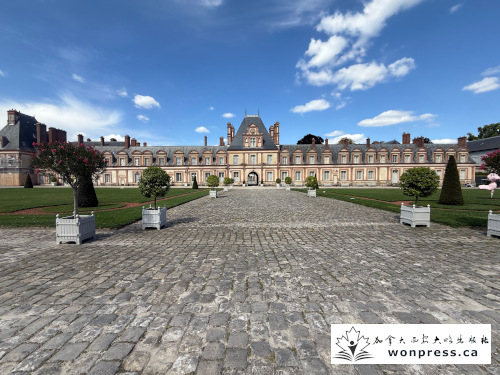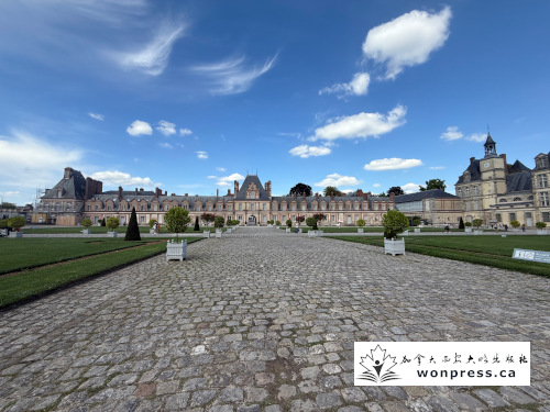 从戴高乐机场驶向枫丹白露的路并不短,但在8月23日这天上午,这一段车程在那日显得格外值得。丛医生在车上热情地给笔者“脑补”枫丹白露宫(Château de Fontainebleau)的历史轶事与建筑传承,试图为我们提前铺陈这座宫殿数百年的层叠记忆;可惜时差与疲惫对我生效,记忆只留下零散的片段,更多的细节只能在后来用脚步与眼睛去记忆与核实。一路上我们穿过好几个小城镇,沿途林木繁茂,某些视角竟让人误以为回到了加拿大的乡间:森林的厚度、路旁低矮的石墙、偶有的林中小径,都让人心情更为宁静。