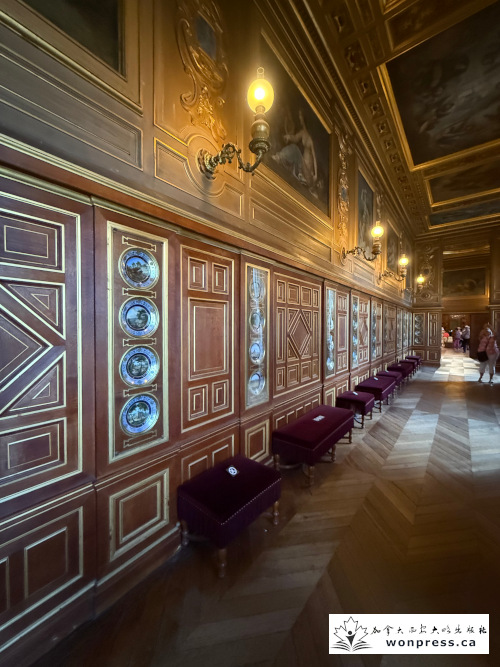 关于内部展陈:若以展品的体量衡量,枫丹白露并不逊色于任何一座“王宫博物馆”。它拥有包括油画、挂毯、雕刻与家具在内的庞大藏品群,许多房间仍保存着当年君主或帝王的私人用品与装潢细节(例如拿破仑的私人寝室及相关陈列),这些私人化的陈设恰是理解历史人物性格与日常生活的直接证据。由于展品数量巨大,我们这次只能走马观花,但哪怕是片刻停留,也能感受到从华丽至内敛多重风格并列的美学张力。关于宫殿被列为世界遗产的原因,还包括它见证的若干法国重大历史事件(如某些王法颁布与拿破仑的关键历史时刻),这些事实使得枫丹白露在历史与艺术上的价值远超单纯的“观光点”。