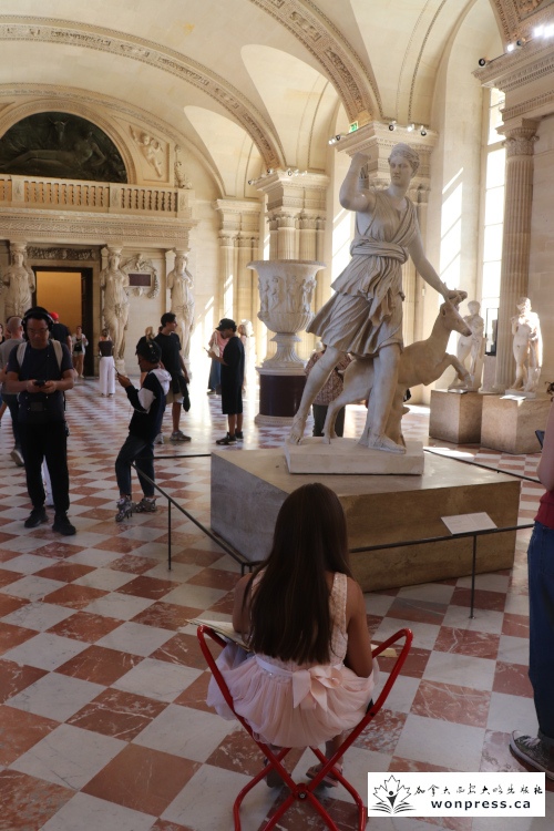 在卢浮宫里面的三个多小时,没有人叫累,我闺女也出奇地用心跟随。团队活动之后,我们也没有继续呆,而是计划离去。在走出卢浮宫时,我心中仍有余韵。这里不仅仅是存放艺术品的展馆,更像是一部浓缩的文明史。从古希腊雕像到文艺复兴巨作,从皇室的辉煌到近代的民主开放,每一步都让人感受到人类创造力的无限。