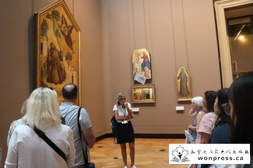 继续前行,我们还看到了《圣母子与圣安妮》,那是达·芬奇另一幅极具代表性的油画。画中圣母抱着圣婴,而圣安妮则坐在一旁,面带温和的笑容。Susan特意指出,这幅画在人物布局和神态表现上别具匠心,母性与慈爱的氛围弥漫其中,仿佛与《蒙娜丽莎》形成呼应。