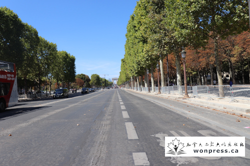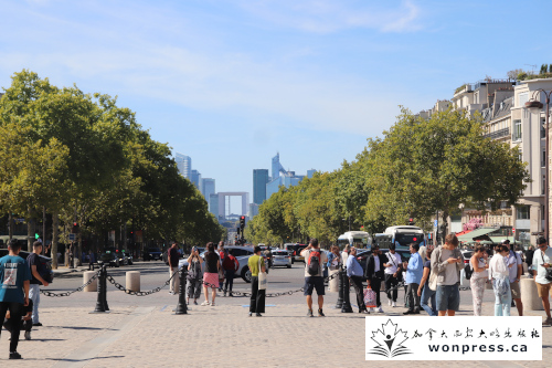 我们沿着大道继续前行,道路两旁高大的梧桐树投下斑驳的光影,林立的商店、咖啡馆与影院让这条巴黎最著名的街道充满活力,熙熙攘攘的人群与川流不息的车辆交织成一幅繁华的都市画卷。一路上不乏公共长椅,供游人稍作停歇,许多法国人就这样悠闲地坐在树荫下,仿佛将时光消磨在散步与闲谈之间。在大道的中段,我们遇到另一处重要的纪念碑,那便是戴高乐将军雕像。它庄重地伫立在人群之间,仿佛提醒世人记得二战时期法国的抵抗精神与民族的自豪。就在这一路的休息区里,我们还遇到一件小插曲:一位女士似乎因疲倦而直接躺在两张长椅上准备小憩,脚边放着她的小提包。恰巧两位警察路过,停下脚步,轻轻将她脚下的包拿起,示意她不要随意放在地上,以免被人顺手牵走。他们善意地建议她把包抱在胸前,或者垫在脑下继续休息。那位女士连连点头致谢,场面没有丝毫的尴尬,反而让人感受到巴黎警察在维护治安时的体贴与细致。这一幕虽小,却让人心头一暖,也让我对这座城市的秩序与人情多了几分好感。