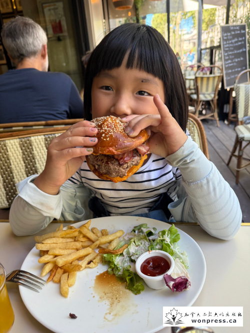 在接近凯旋门时,我们特意拐入了一条小街,避开了主干道的喧嚣。街角的一家餐馆门可罗雀,却因此格外安静。我们坐下点了一顿午餐,虽然菜品算不上精致,但却有一种简简单单的满足感。就在用餐过程中,意外发生了:几只蜜蜂突然飞进来,围着食物和饮料盘旋,闺女被惊扰得有些慌乱。服务员见状,立刻拿来工具,耐心地将蜜蜂驱赶,甚至干脆设法消灭,避免再次打扰客人。他们的细心和迅速让我们颇为感动,这份人情味让这顿原本寻常的午餐多了一份温暖记忆。相比香榭丽舍大街的奢华气息,这里显得更接地气,也让人有机会窥见巴黎日常生活的另一面。