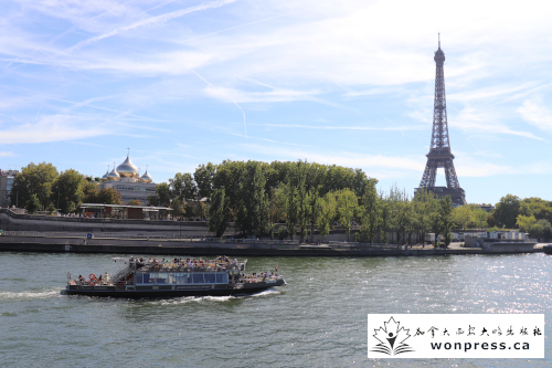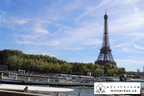 走近塞纳河时,眼前的风景豁然开朗,河水在阳光下泛着粼粼波光,游船缓缓驶过,两岸的建筑在水面留下倒影,显得既宁静又庄重。沿着河道西行,视野逐渐宽阔开来,这里果然是拍摄铁塔的理想角度。铁塔的身影在河对岸逐渐显现,仿佛从城市的肌理里一点点“生长”出来,让人心生期待。