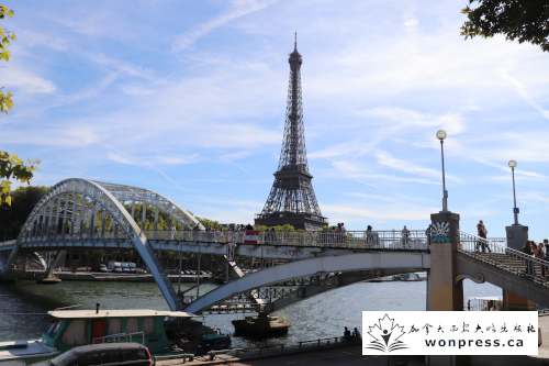 很快,我们来到比尔哈凯姆桥(Pont de Bir-Hakeim)。这座桥因独特的双层结构而闻名:上层是地铁轨道,下层则供行人和车辆通行,桥身的铁质拱形结构既坚固又极具美感。许多影视作品都曾在这里取景,如今我们亲自走上桥,也忍不住停下来多看几眼,感受它的独特气质。过桥之后,我们顺着河道慢慢折返,铁塔的身影越来越近。